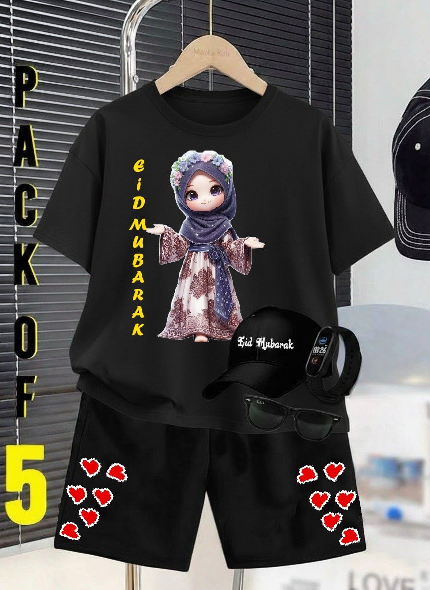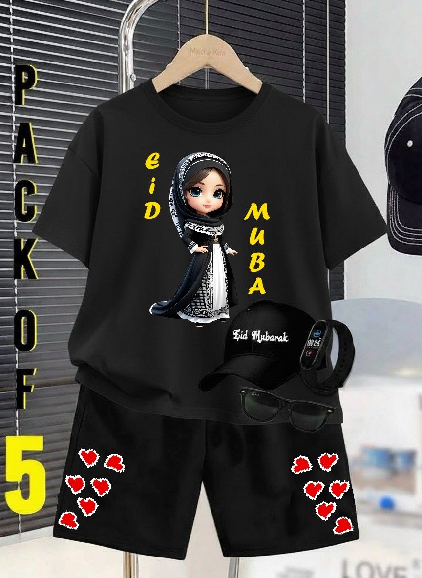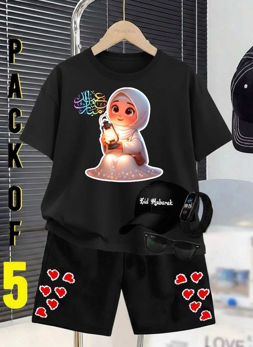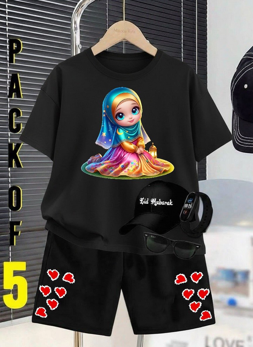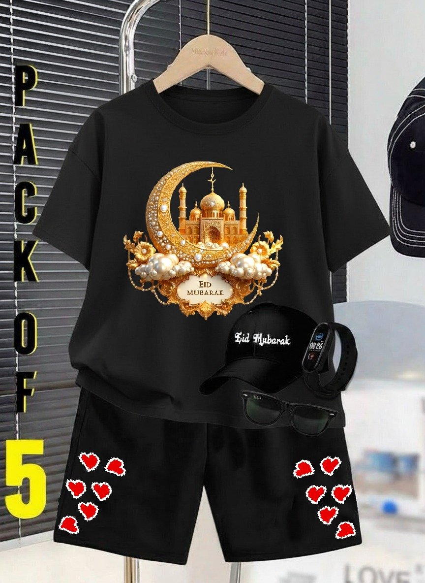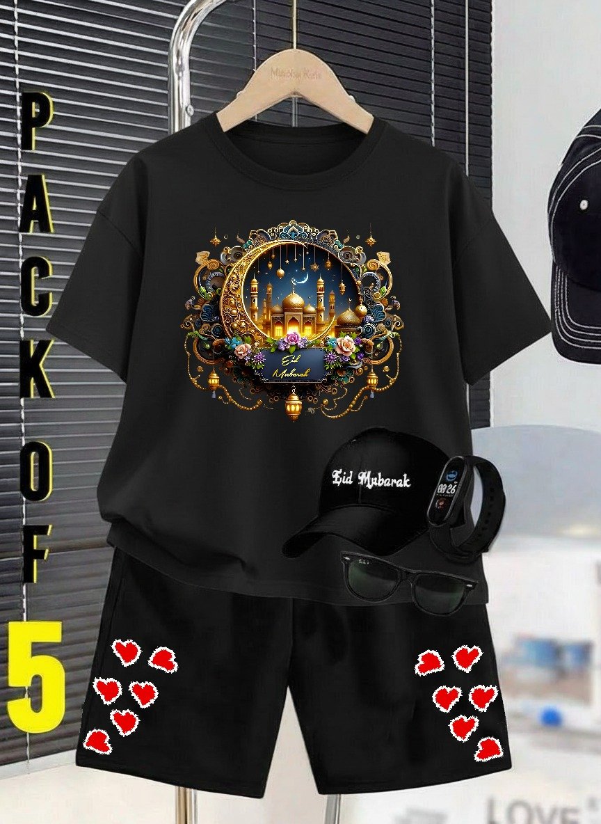Pack of 5 (T-Shirt + Shorts+ Digital Watch + Sunglasses + Cap with)
