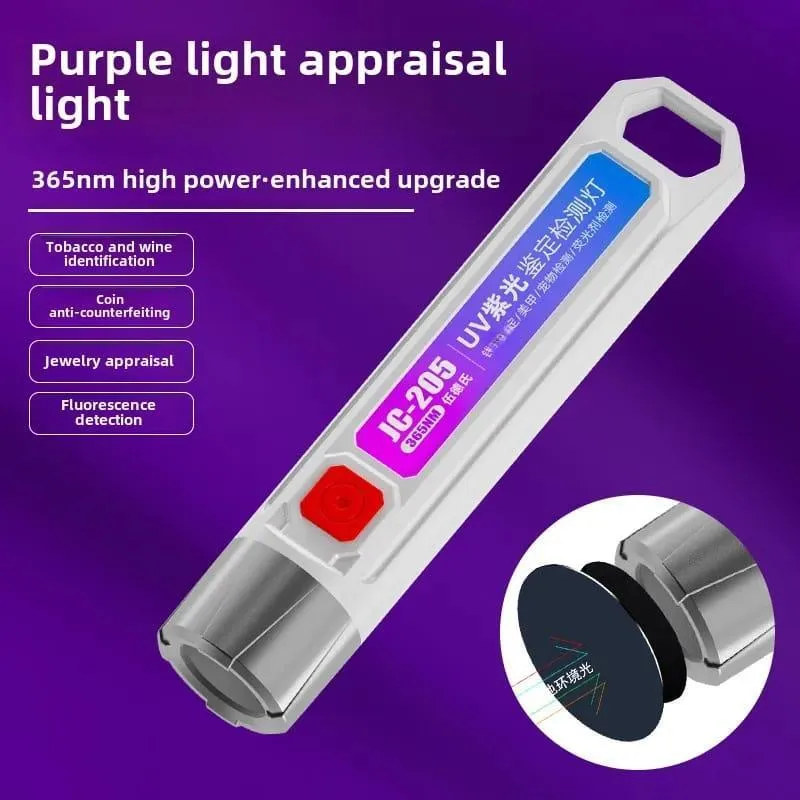 UV light for currency checking instantly identifies fake banknotes by illuminating hidden UV-sensitive security threads, fibers, and, and, and inks,